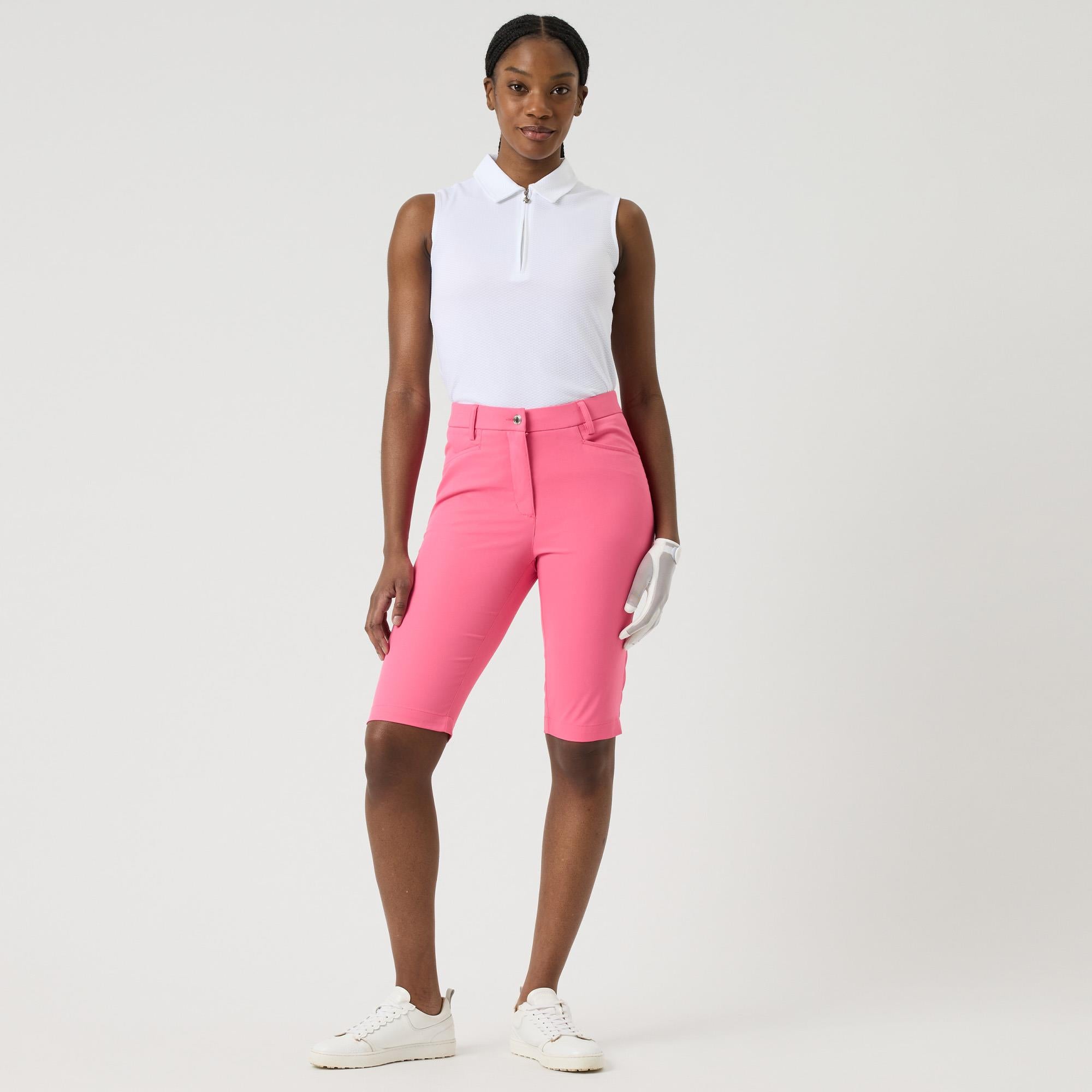Comfort and style go hand in hand on the golf course, our selection of premium quality bermuda shorts delivers both. Lightweight and designed for optimum freedom of movement, making them a favourite among female golfers. Discover the practicality of bermuda shorts with features like pockets and technical performance materials that protect you from the sun's harmful rays. Bermuda shorts can transition seamlessly from the course to everyday wear.