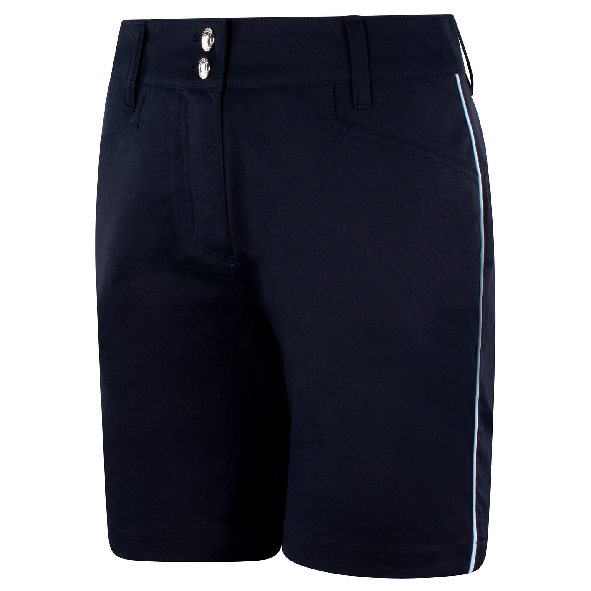 The new Trust 2 bermuda shorts from Pure Golf have been cut from a 4-way fabric that offers exceptional levels of both flexibility and breathability, ensuring no compromise to thr wearers freedom of movement whether worn on the golf course or casually. These versatile ladies bermuda shorts combine a smart style with activewear-level comfort, making them perfect for all occasions. With functionality assured thanks to the 2 front and 2 back pockets, the Trust 2 bermuda shorts are sure to become an essential part of any lady golfers wardrobe in the warmer conditions this season.Style the Trust 2 bermuda shorts with a polo or knitwear from the Pure Golf ladies clothing collection for a signature look!