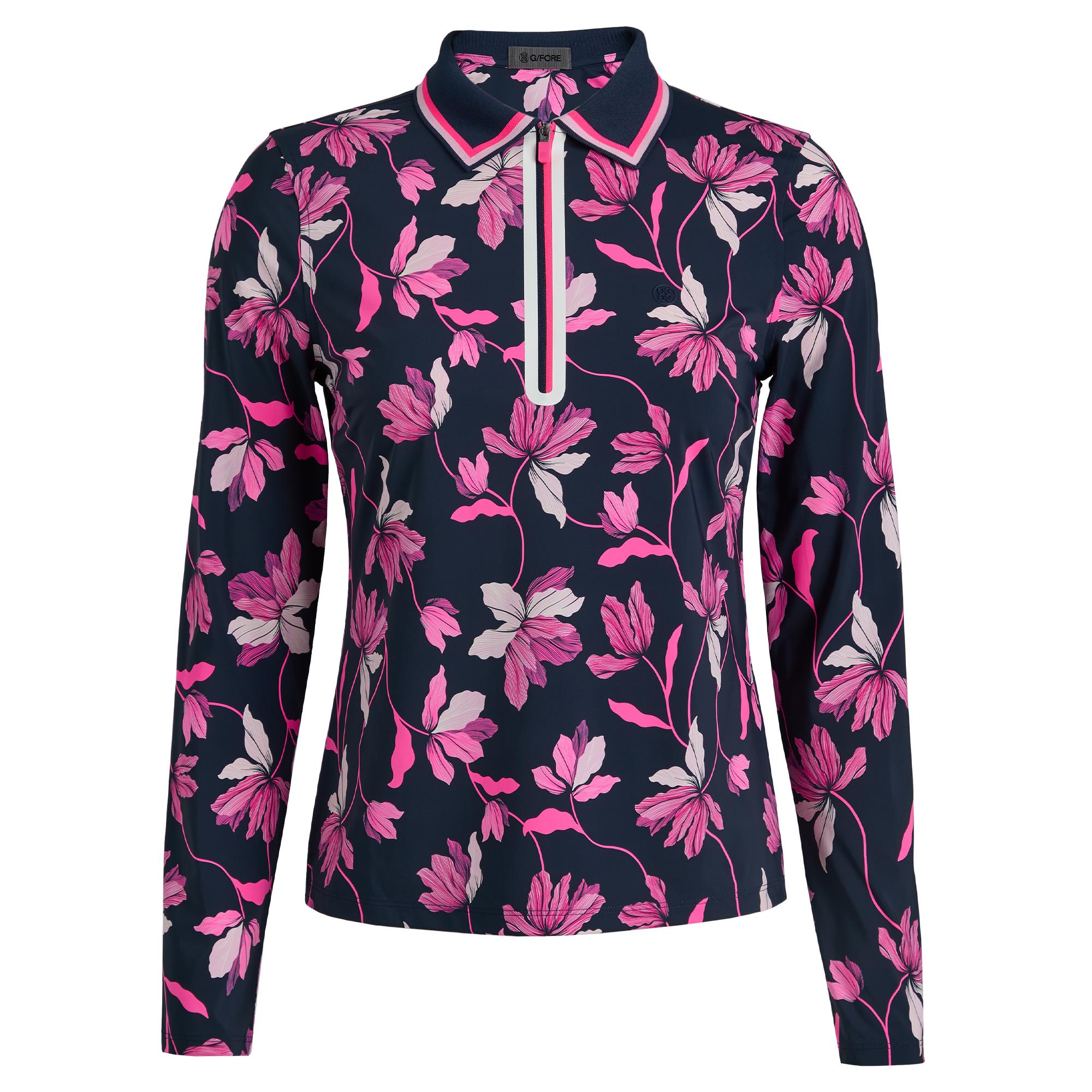 G/FORE Iris Print Silky Tech Nylon Long Sleeve Polo Shirt Twilight