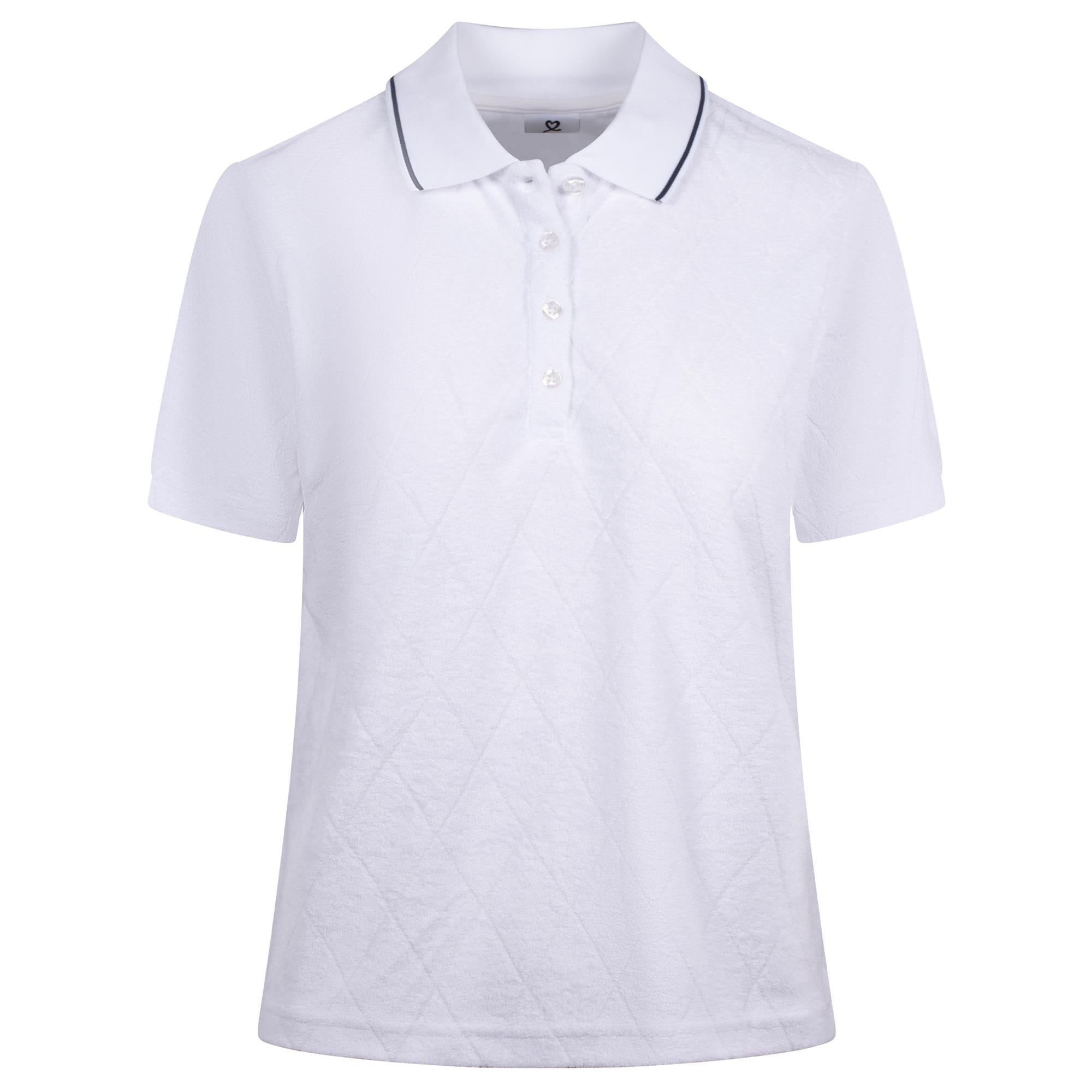 Where performance meets feminine detailing, the Daily Sports Terry Touch ladies golf polo shirt has been crafted from terry fabric for a lightweight, breathable feel. This performance fabric promotes breathability and stretch, helping you stay comfortable from the first tee to the final green. The feminine cut offers a flattering drape without restricting movement, and the refined detailing including short sleeves, a finely knitted collar, and a buttoned front,enhance this polos premium appeal. Easy to pair with skorts or tailored bottoms, the Terry Touch polo delivers a polished look suitable for both on and off the golf course