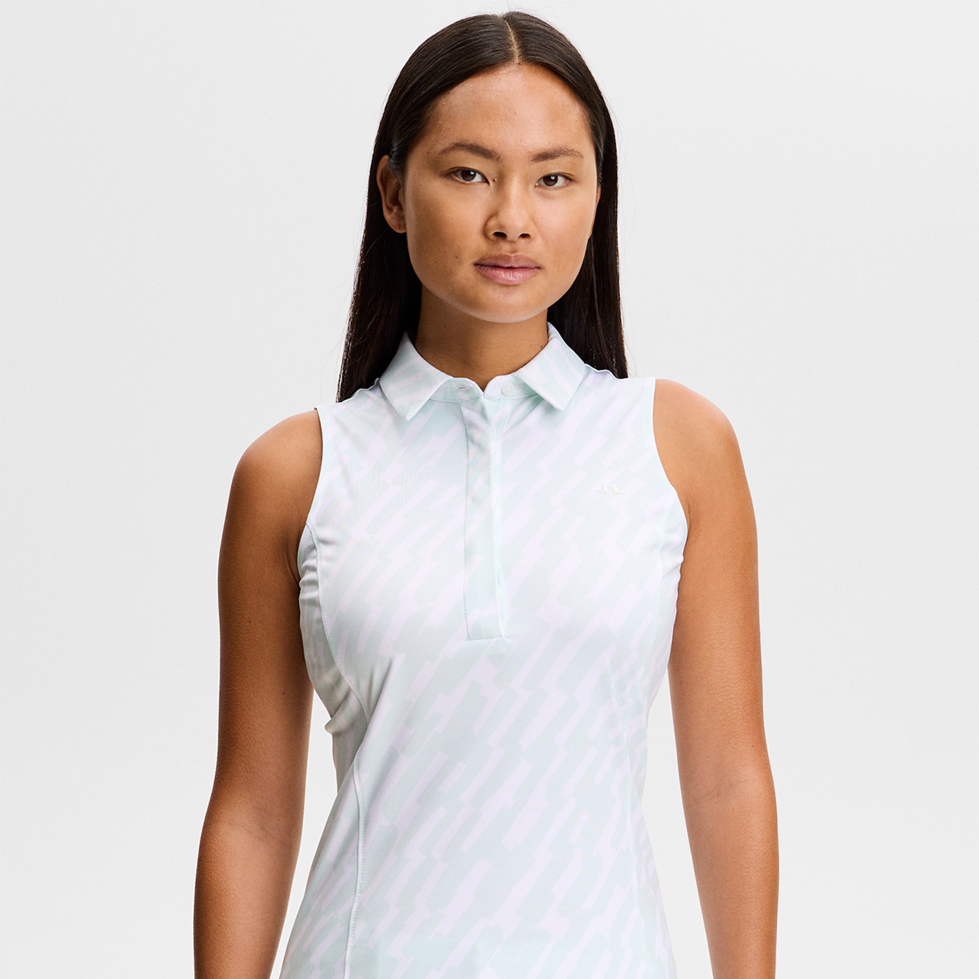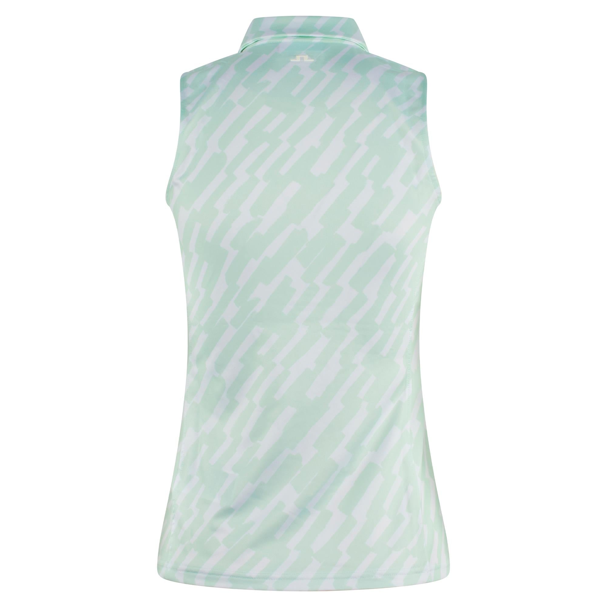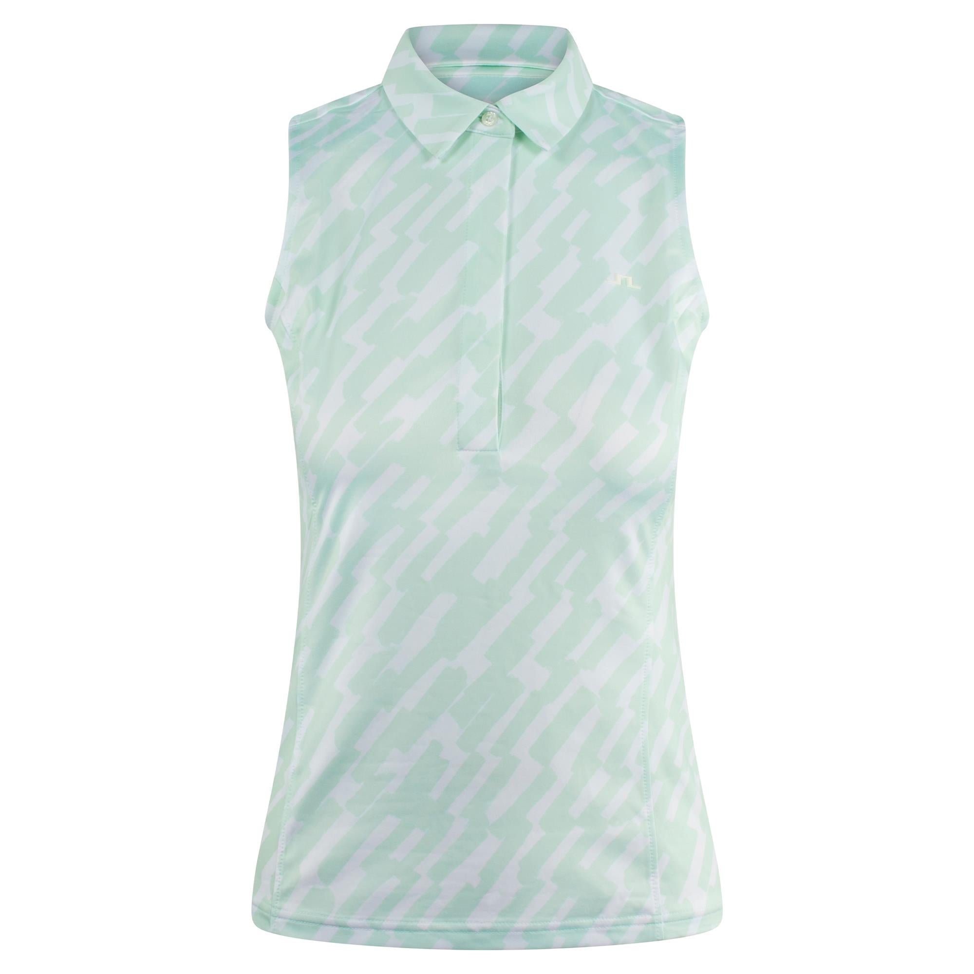 J Lindeberg Dena Print Ladies Sleeveless Golf Polo Shirt Oak Skylight M