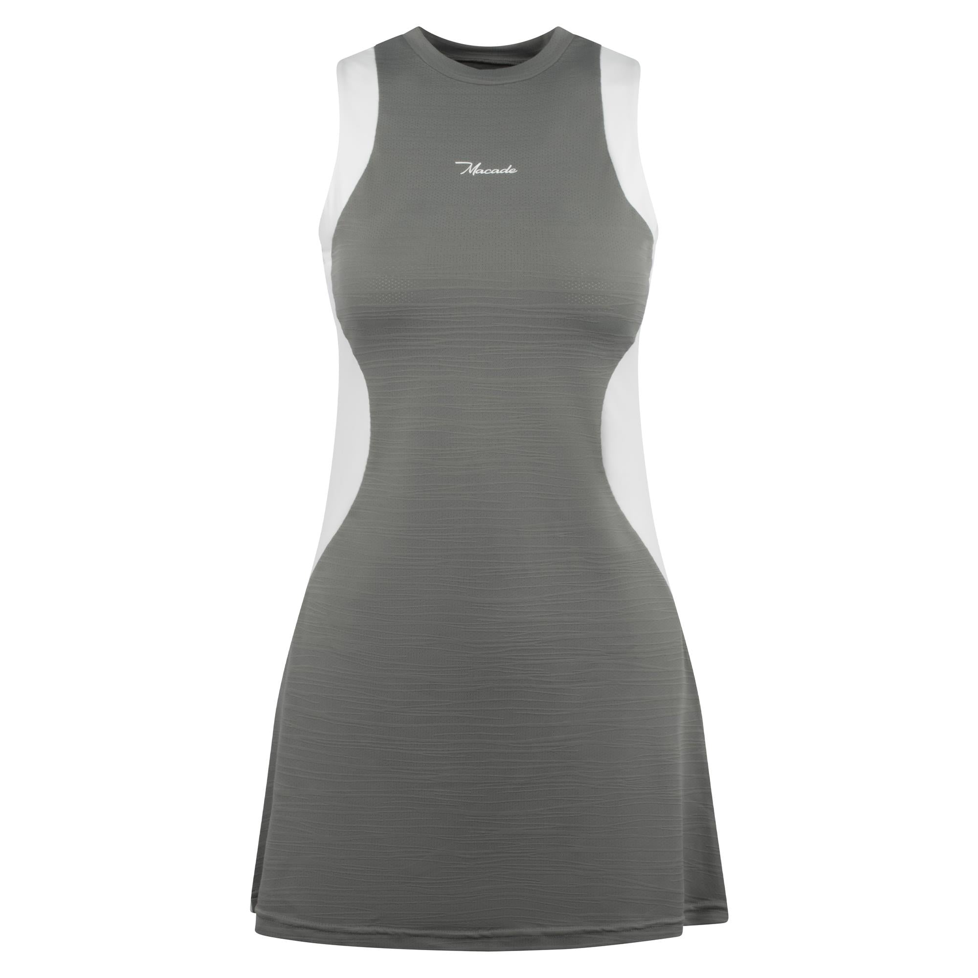 The Inez sleeveless performance dress from this seasons Macade ladies golf clothing range has been crafted with a streamlined silhouette and a subtle textured surface in a stretch fabric that allows comfortable movement while maintaining a polished appearance. A confident one-piece option for warm days on the course, the Inez also has inner shorts included to enhance the wearers comfort levels. Equally at home both on the course or when worn casually, this versatile dress can be paired with a Macade mid layer when temperatures are cooler, guaranteeing it will become an essential element of any lady golfers wardrobe